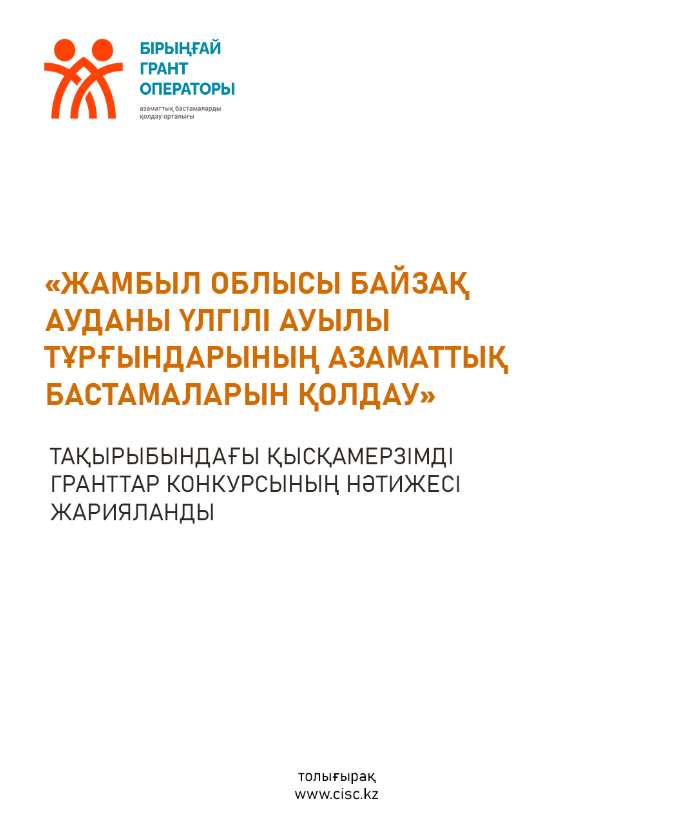 «Жамбыл облысы Байзақ ауданы Үлгілі ауылы тұрғындарының азаматтық бастамаларын қолдау» әлеуметтік жобасы аясында жарияланған қысқамерзімді грант байқауының қорытындысы шығарылды.