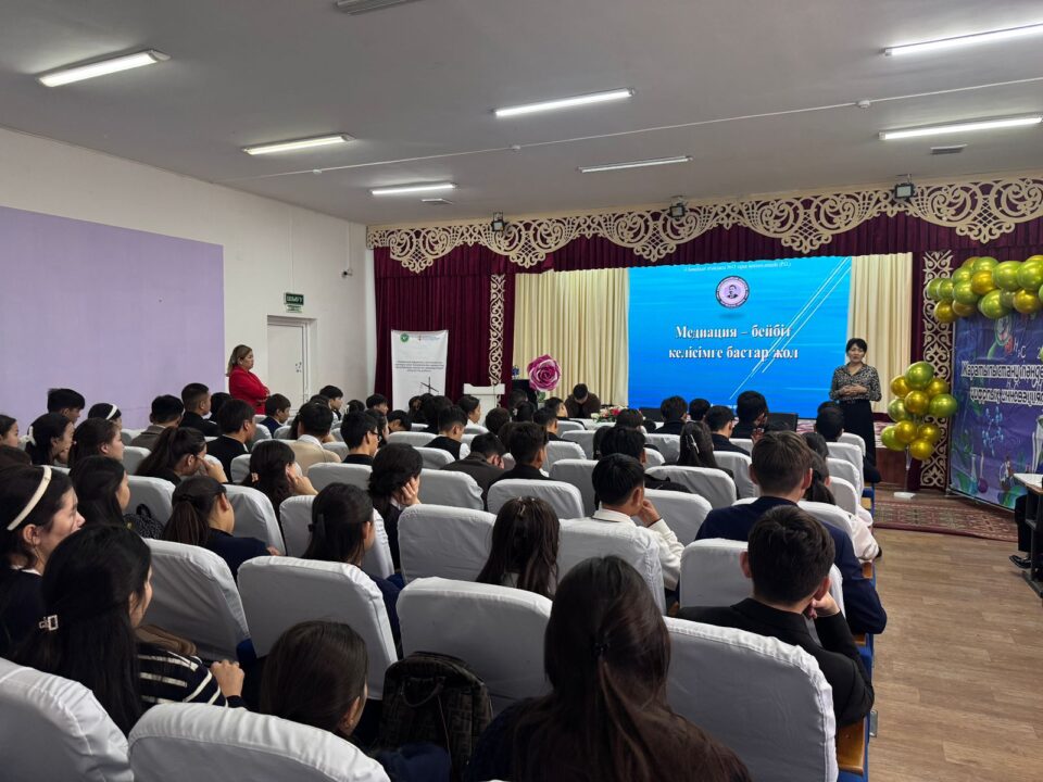 Жамбыл облысының әкімдігінің  ақпараттық және қоғамдық даму басқармасының «Халықтың құқықтық сауаттылығын арттыру және медиациялық қызметтер орталығының жұмысын ұйымдастыру» тапсырысы аясында  “Жамбыл облысы жастар ұйымдарының Қауымдастығы” заңды тұлғалар бірлестігі мен 2025жылы 04 қараша күні Жуалы ауданы Б. Момышұлы ауылындағы Әлихан Бөкейхан атындағы №15 тірек мектеп-лицейінде  «Медиация бейбіт келесімге бастар жол» тақырыбында кездесу ұйымдастырылды.